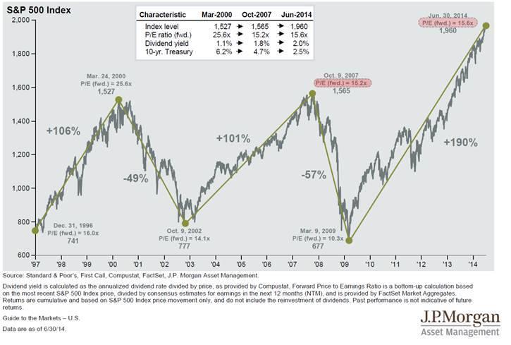 Hur brutal kommer kraschen att bli efter den massiva uppgång vi sett sedan 2009? Är de senaste dagarnas negativa utveckling bara början på ett stup som kanske är lika djupt som uppgången mellan 1996 och 2000 var hög? I så fall skall vi ner från runt 1900 till 400 punkter på S&P 500 innan botten är nådd.