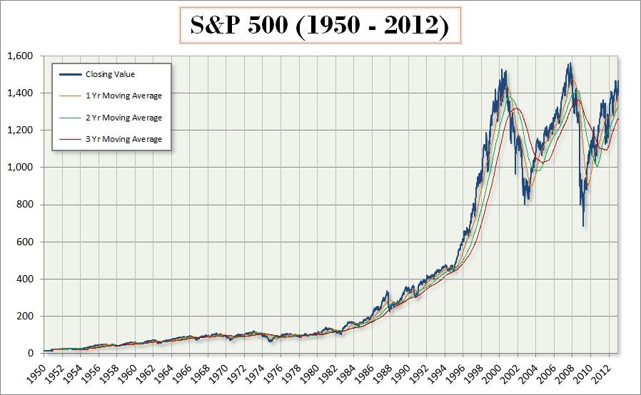 Grafen nedan visar upp och nedgångar i det Amerikanska börsindexet S&P 500 (Standard & Poor’s 500). Det är ett börsindex som mäter marknadsvärdet på 500 stora företag som handlas i USA. Indexet skall vara representativt för USAs industri, har funnits sedan 1957 och väljs ut av en kommitté. Dessa aktier handlas på NASDAQ eller New York stock Exchange.