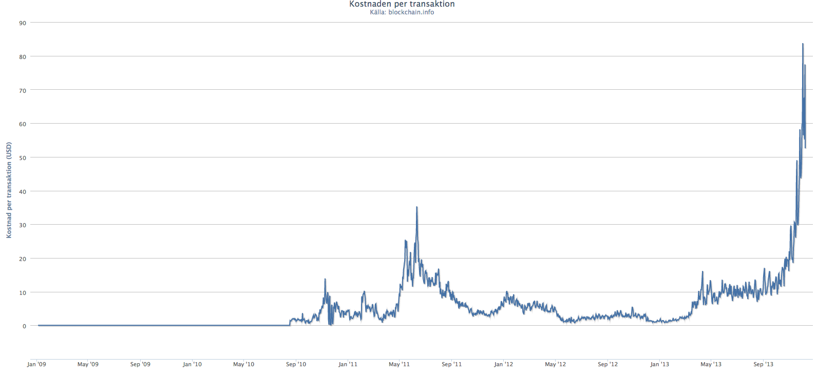 Nedan ser vi ökningen av transaktionskostnader från och med jan 2009 till december 2013.