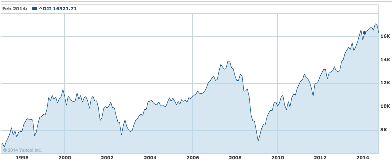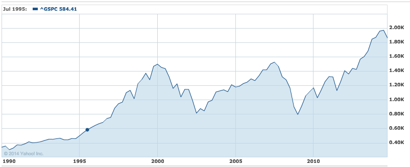 I artikeln använde vi bara S&P 500 som exempel. Låt oss titta på några andra index för att se om de följer samma mönster. Vi kollar mellan 1990 fram till idag, den 16 oktober 2014.